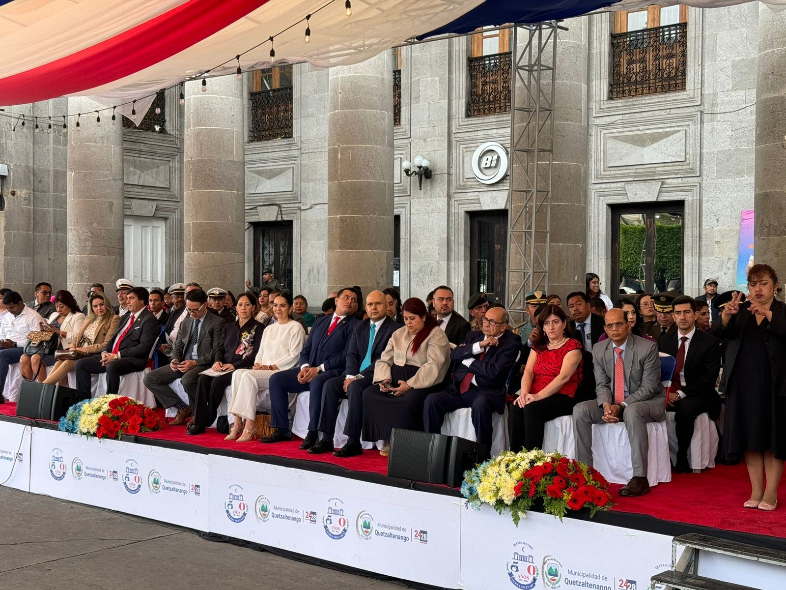 Los pabellones fueron izados en medio de un acto solemne en el que participaron el Instituto Adolfo V. Hall y la Policía Municipal de Quetzaltenango. Posteriormente en el frontispicio de la comuna siguieron los actos, donde el alcalde Juan Fernando López, ofreció un mensaje alusivo a la fecha.