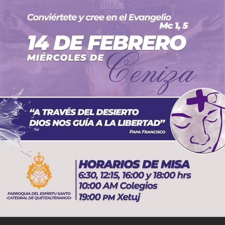 La Cuaresma inicia el miércoles de Ceniza, te compartimos los horarios de misas en las diferentes iglesias y parroquias de Quetzaltenango.