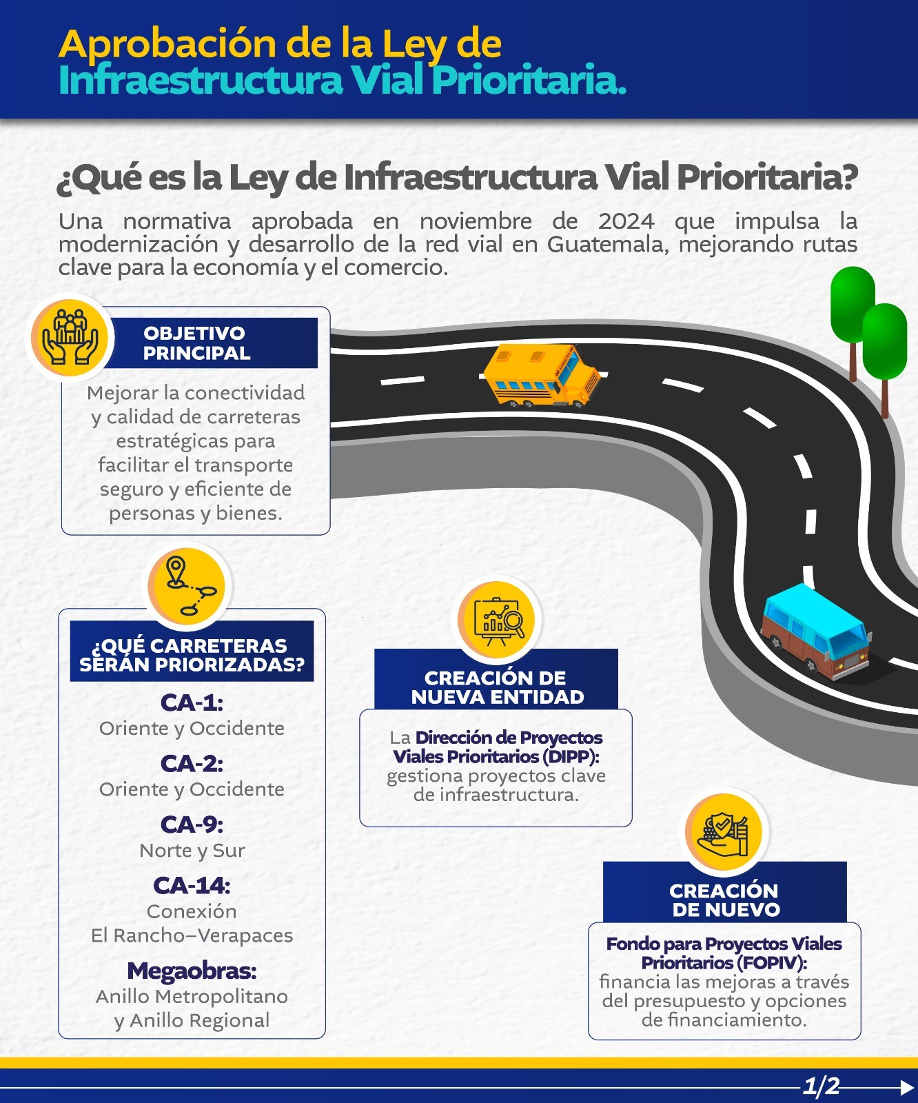 Tanto el Gobierno como el sector privado se mostraron satisfechos por la aprobación en el Congreso de la República de la Ley de Infraestructura Vial, pues aseguran que la normativa prioriza trabajos de ampliación, rehabilitación, mejoramiento, mantenimiento y conservación en 11 rutas centroamericanas.