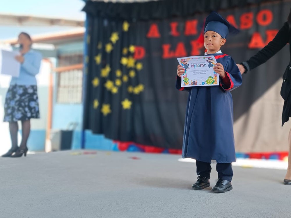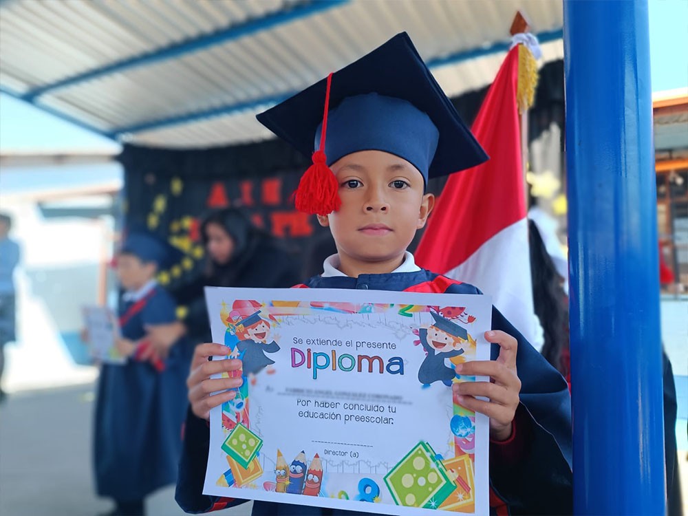 Las autoridades educativas entregaron un diploma a los niños por haber culminado su educación preescolar