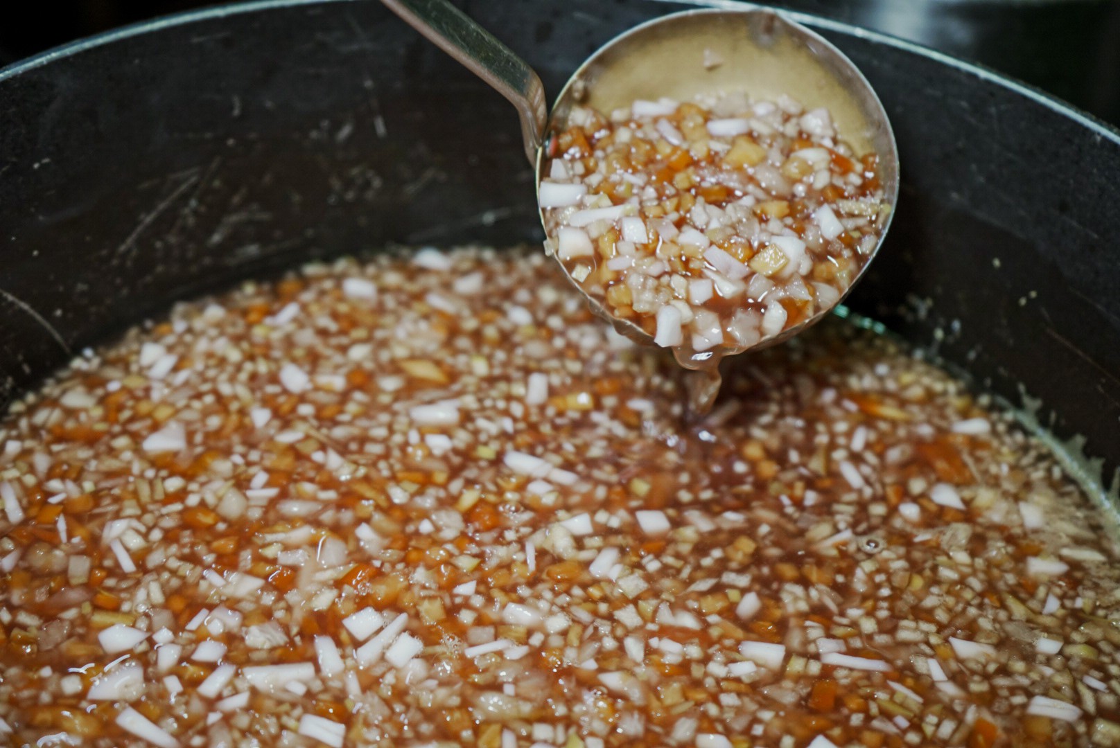 “Hacemos dos infusiones, una que es de todas las especias aromáticas, la segunda de corazones y cáscara de fruta, cuando lo mezclamos podemos generar un mejor balance en sabores, para que no sea muy tosco”, explica el chef Rosales, quien también resalta que en su versión del ponche, las frutas se agregan al final para evitar que se deshagan demasiado y mantener su textura.
