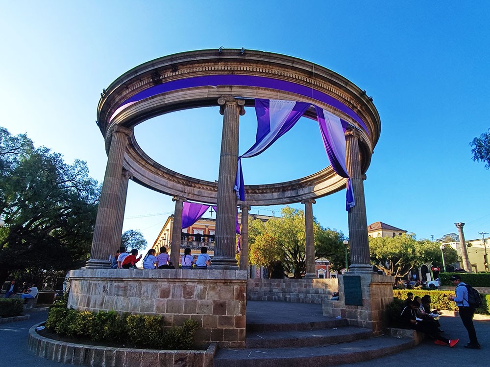 El director de comunicación social de la municipalidad explicó que se utilizaron lienzos de tela morados y flores propias de la época, en todo el parque. En esta oportunidad se aprovechó los macetones que se ubican en las columnas de las esquinas del parque central.