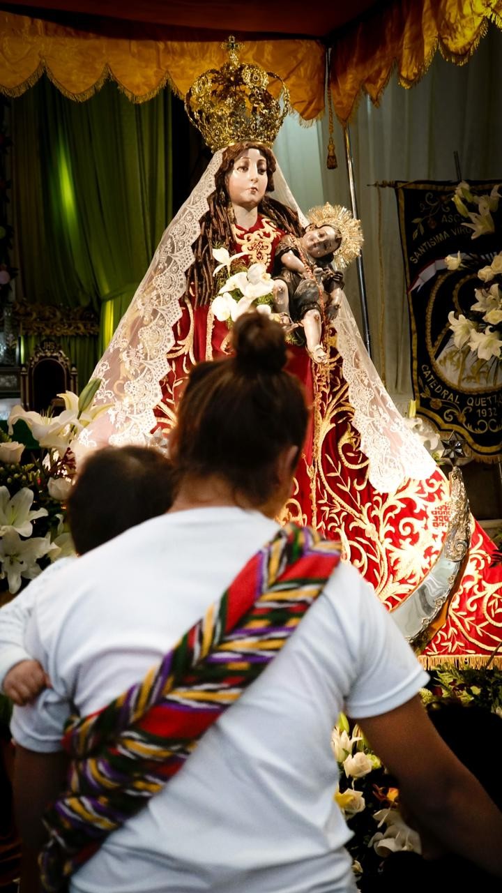 Ingrid Santizo, vecina quetzalteca, llegó a catedral con su nieto y explicó que “él es una bendición para mi familia porque estuvo un mes en el intensivo… se lo pedimos de todo corazón para que ella intercediera ante Dios para que el pudiera salvarse, como no venirle a agradecer a nuestra madre”.