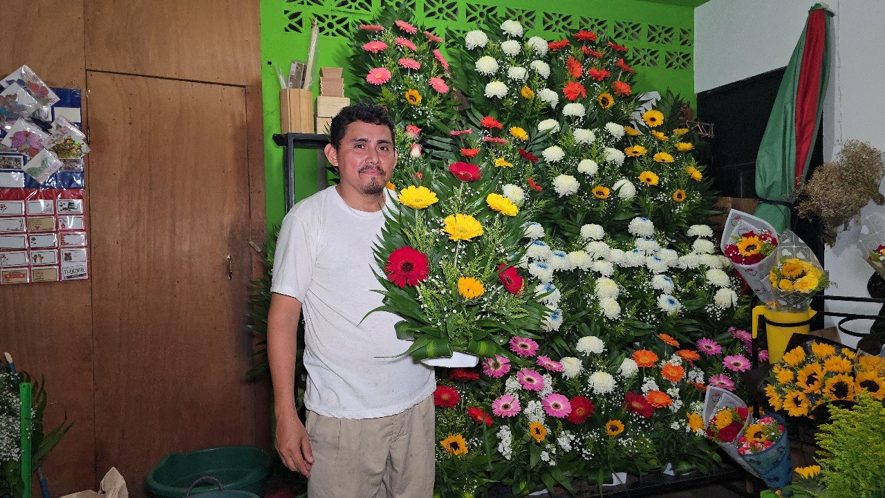 Aunque es oriundo de Cuyotenango, Suchitepéquez, decidió poner su negocio en el municipio de San Francisco Zapotitlán. En fechas especiales, como la celebración del Día de los Santos, ofrece a su clientela y amigos diversidad de ramos y arreglos florales.
