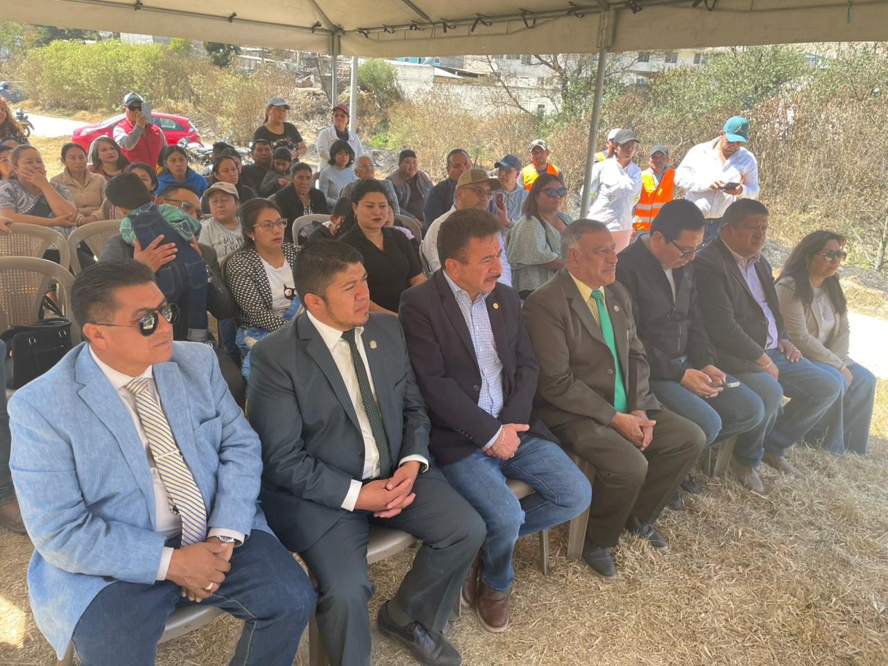 Autoridades municipales y comunitarias, junto al diputado por Quetzaltenango y representantes de la escuela del sector Baños de San Juan y de la Colonia Prados, participaron en el acto de colocación de la primera piedra del nuevo puente en el ingreso al municipio de Salcajá.