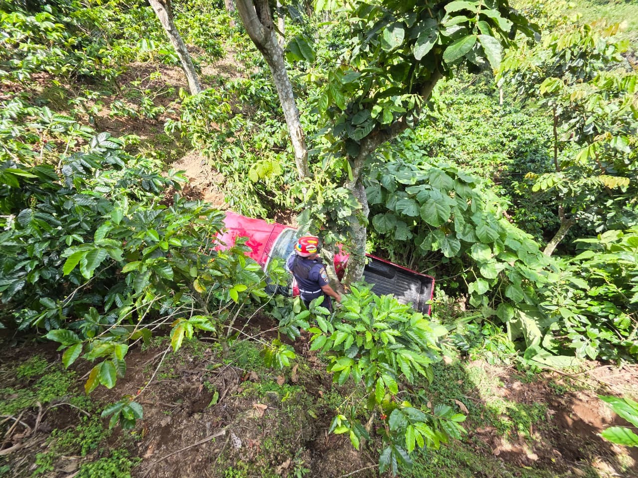 Elementos de la Brigada de Socorro se trasladaron rápidamente al lugar y localizaron, al fondo de un barranco, un vehículo tipo pick-up color rojo con dos personas en su interior. Los socorristas realizaron el rescate: uno de los ocupantes presentaba crisis nerviosa y el otro golpes leves, por lo que ambos fueron trasladados primero a un centro asistencial local y luego a un hospital privado en Mazatenango.