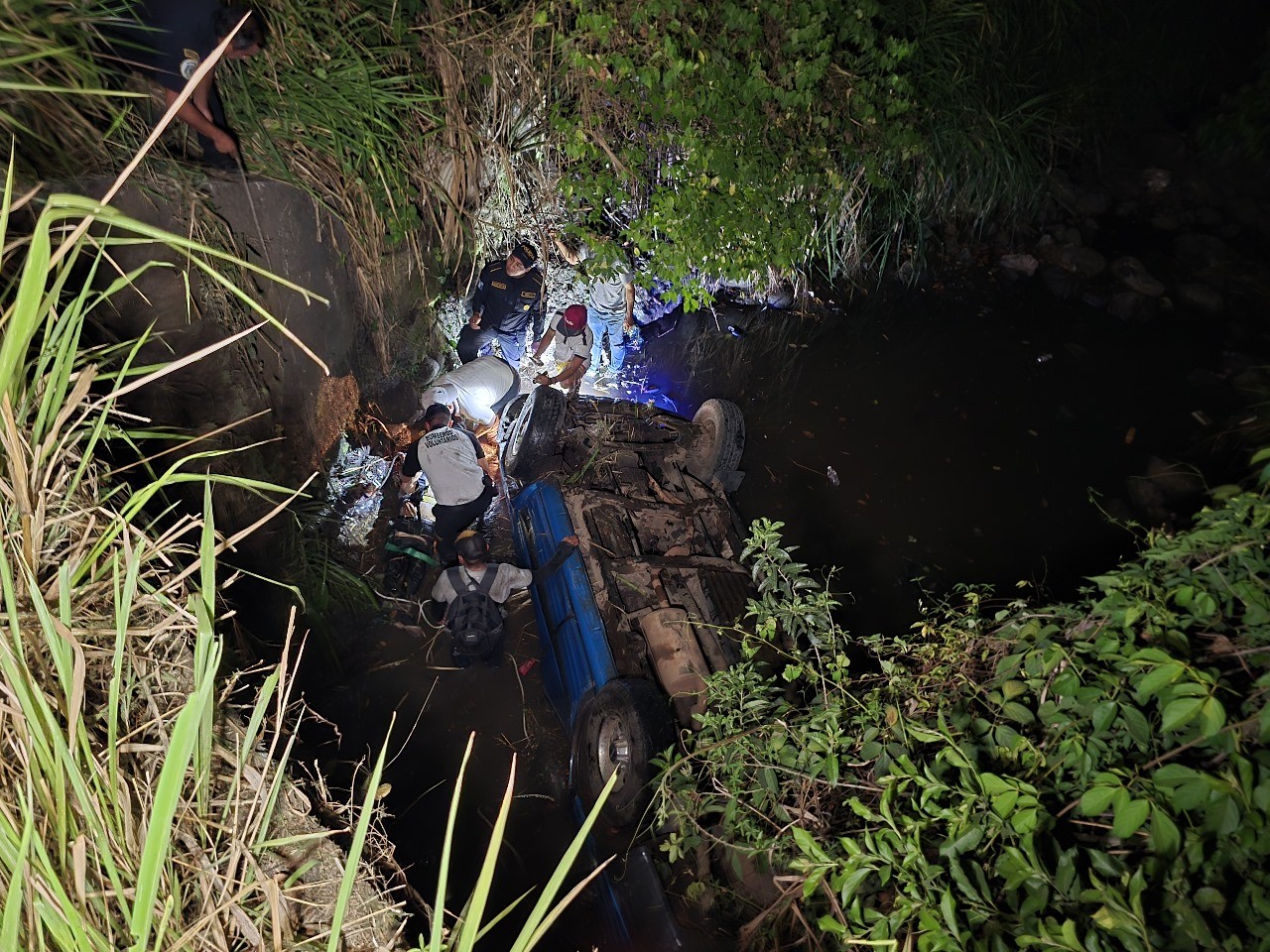 “Fuimos alertados de un hecho de tránsito cerca de colonia Bilbao, en la circunvalación de Mazatenango, en el lugar localizamos a un vehículo que se encontraba encunetado, del cual rescatamos a una mujer quien fue identificada como Cindy Irene Camrey Méndez y a su hija Sharlyn Pérez Camrey, originarias de San Miguel Petapa; fueron trasladadas hacia la emergencia del Hospital Nacional”, informaron Bomberos Voluntarios de Mazatenango.