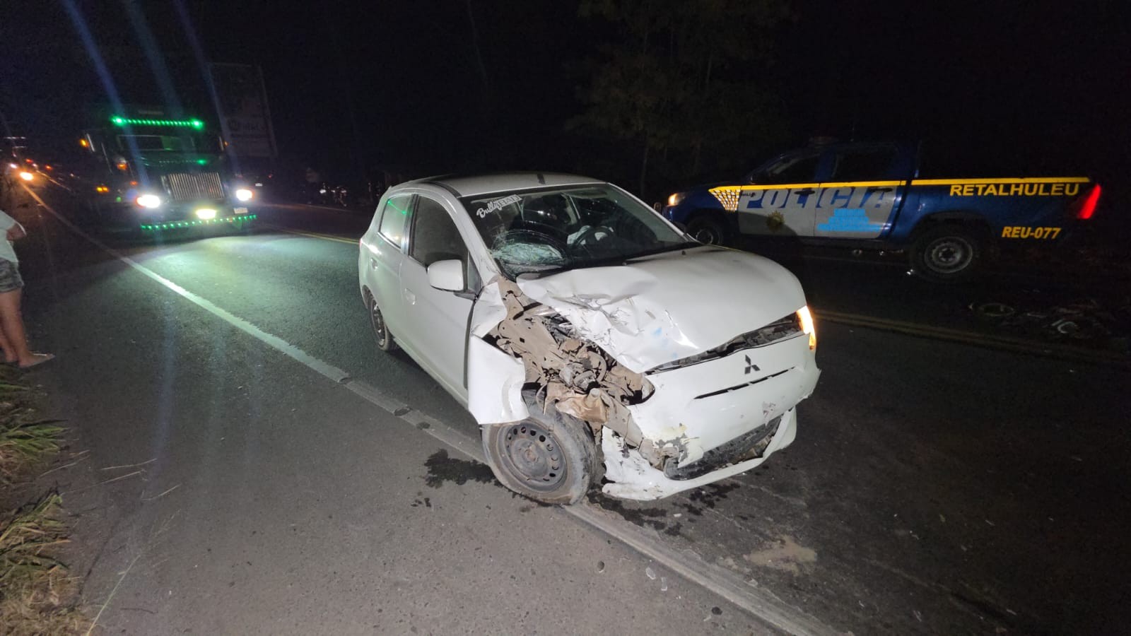 Los socorristas confirmaron que en la cinta asfáltica falleció el joven Ludwin Gudiel Satey Quezada, de 17 años, residente del sector Las Palmas, cantón Chacalte, Cuyotenango.