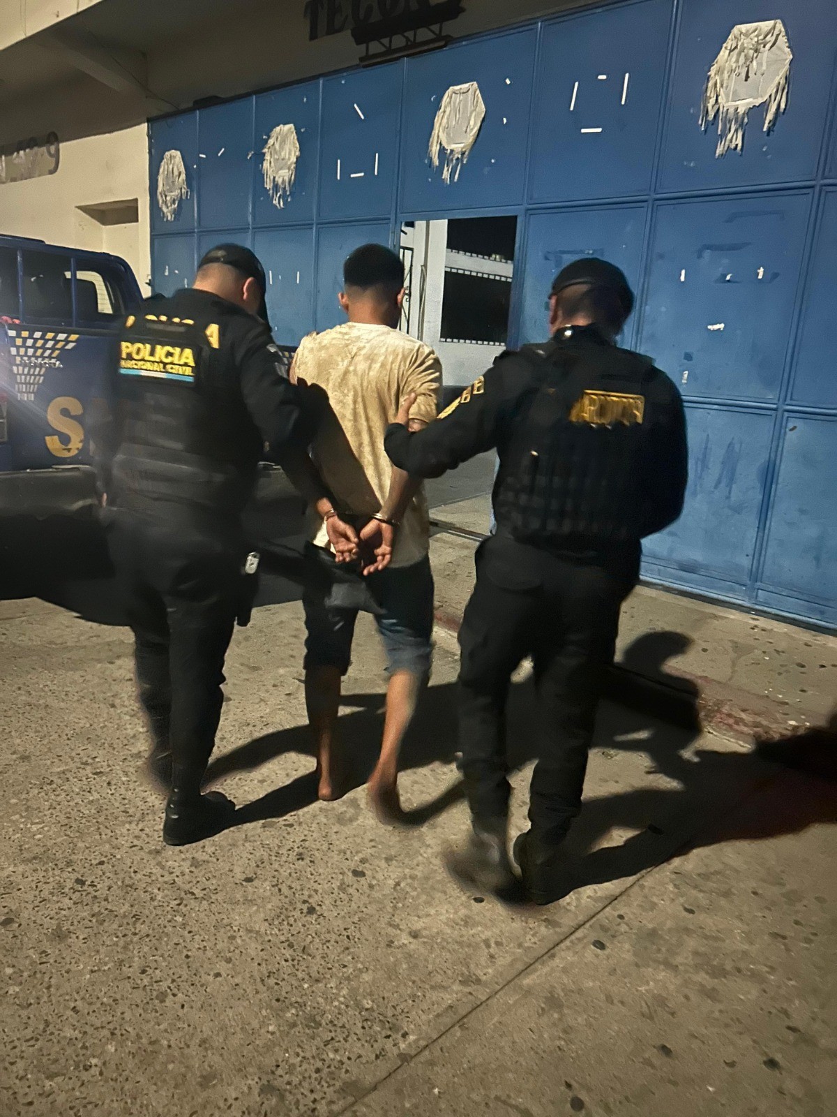 Se informó que los agentes de PNC, tras escuchar disparos, acudieron al lugar antes mencionado, en donde fueron recibidos a balazos por parte del detenido, quien intentó esconderse en un domicilio, e interrumpió el descanso de una familia, quienes gritaban pidiendo auxilio.