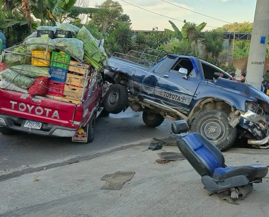 Se registró la colisión de dos picops que protagonizaron un fuerte accidente de tránsito en jurisdicción de Nuevo San Rafael, municipio de San Rafael Pie de la Cuesta, San Marcos. Elementos de los Bomberos Municipales Departamentales de la aldea Chayen trasladaron a una persona al Hospital Regional de San Marcos.