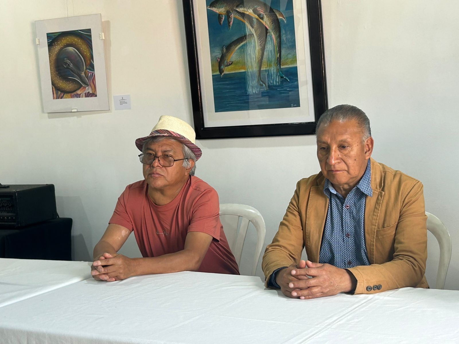 Los tres artistas son Paulino Pichiya, Haroldo Coyoy y Josué Hernández.