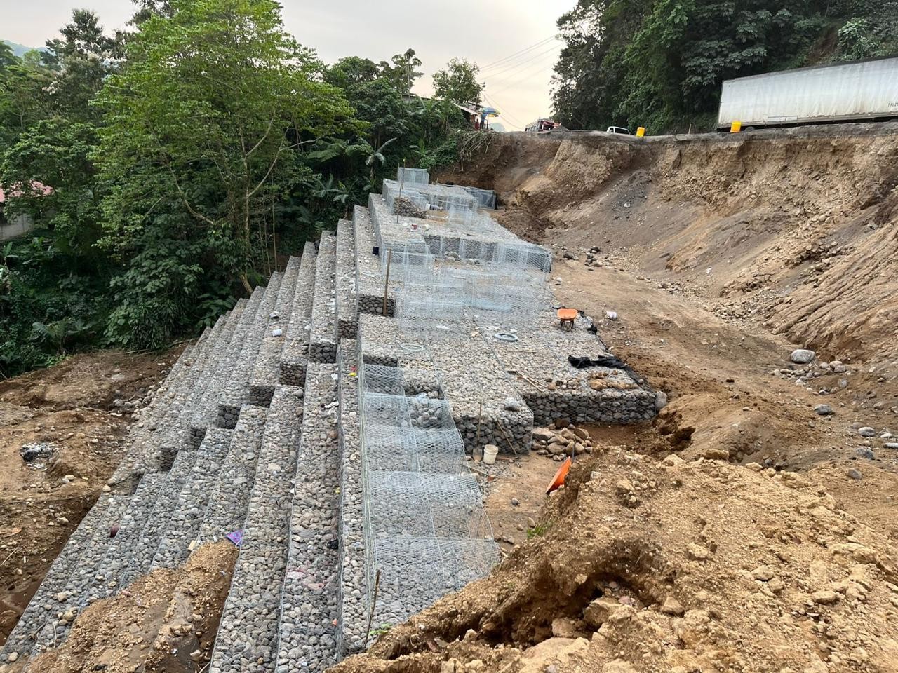 Los trabajos de muro de contención y un disipador para conducir el agua pluvial hacia el río son labores que avanzan de forma significativa para la rehabilitación permanente del paso vehicular de la carretera Inter Troncal al Occidente, conocida como CITO 180.