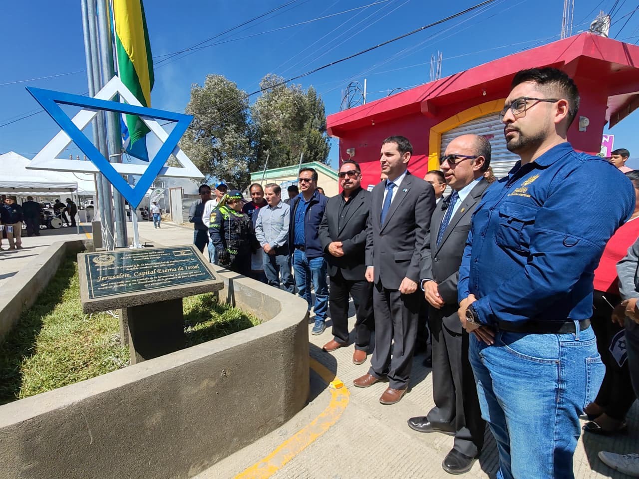 Las autoridades municipales, acompañadas por el embajador de Israel, participaron junto a vecinos en el acto oficial de designación del tramo pavimentado en la zona 4, que conecta con el sector Cuatro Caminos, como calle Jerusalén.