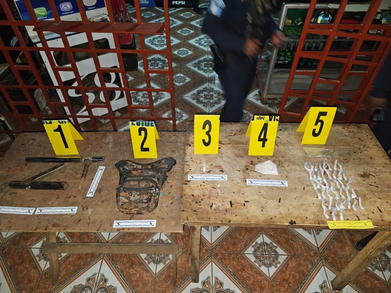 Como resultado de los operativos, las autoridades reportaron la aprehensión en flagrancia de Osmandi A. y Lesly M. Durante las diligencias también se incautó una bolsa con marihuana, recipientes que contenían piedras de metanfetamina, una bolsa con municiones para armas de uso exclusivo del Ejército de Guatemala, un arma hechiza y una bolsa que contenía cocaína.