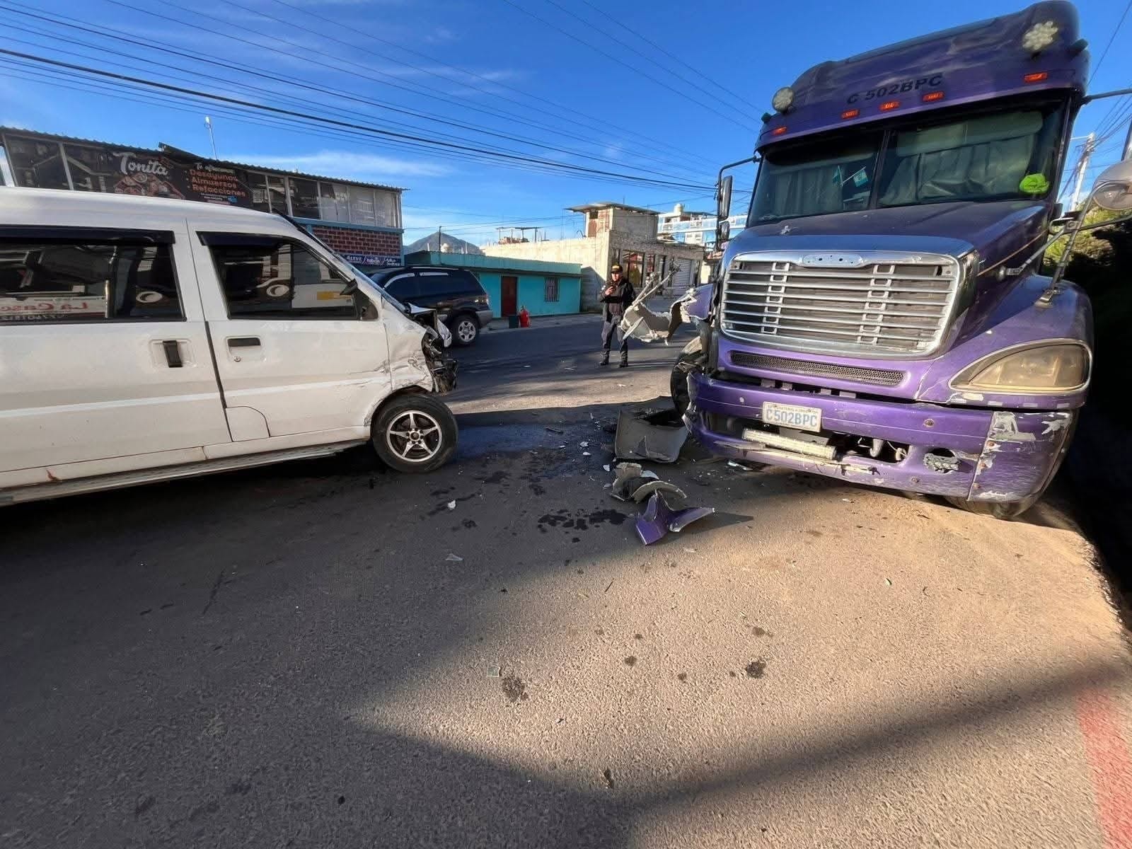 Un tráiler y una panel colisionaron de frente en el kilómetro 252.5, salida a la zona costera de San Marcos, informaron Bomberos Municipales Departamentales de San Pedro Sacatepéquez; el percance dejó daños materiales y una persona lesionada.
