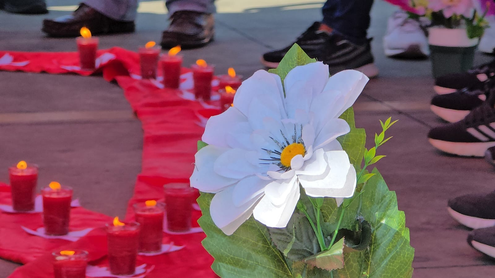 Como parte de las actividades, se formó una moña roja con veladoras, las que fueron encendidas recordando a las personas que perdieron la vida por esta enfermedad.