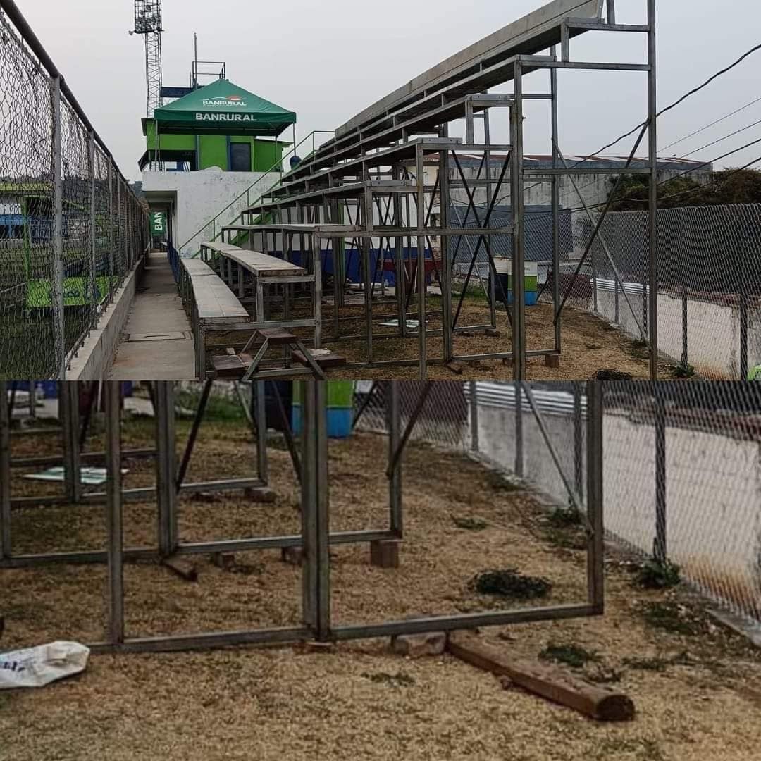 Durante el recorrido, se pudo percatar de que se instaló un graderío de estructura metálica, los cuales, según detalla Conred, tiene deficiencias asociadas a la base en donde dichas estructuras estarán emplazadas. Cuñas de madera y hormigón son las que se colocaron para nivelar este espacio, que sostendrá a centenares de aficionados.