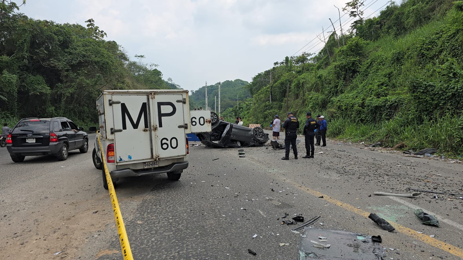 Una mujer identificada como Santa Tomás, de 45 años, fue trasladada de emergencia al Hospital de Tiquisate, Escuintla, con múltiples golpes. En el lugar del accidente quedó fallecido un hombre, quien posteriormente fue identificado por fiscales del Ministerio Público como Manuel Rodas Antonio, de 55 años, originario de Huehuetenango.