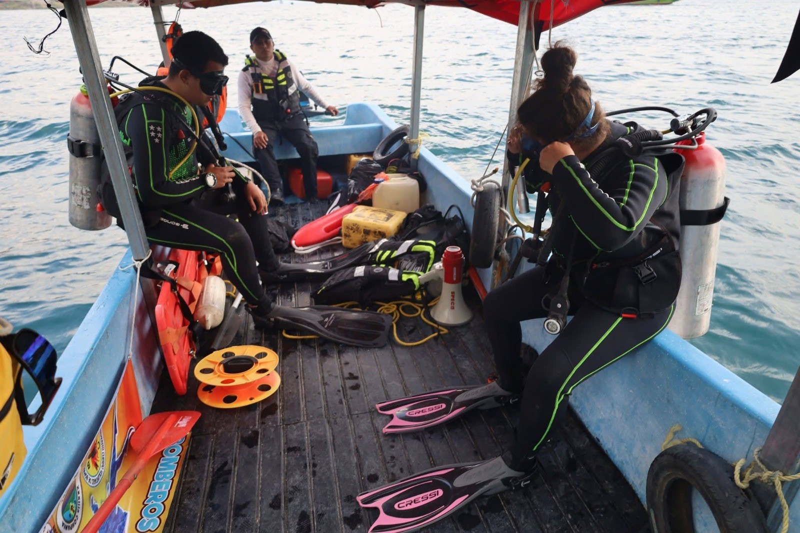 Desde entonces, elementos de los Bomberos Voluntarios han liderado las labores, con el apoyo de la sección especializada de rescate acuático conocida como “Hombres Rana”. Los socorristas han efectuado múltiples inmersiones a profundidades de hasta 85 pies, utilizando equipo tecnológico avanzado para rastrear el área donde se presume ocurrió el incidente.