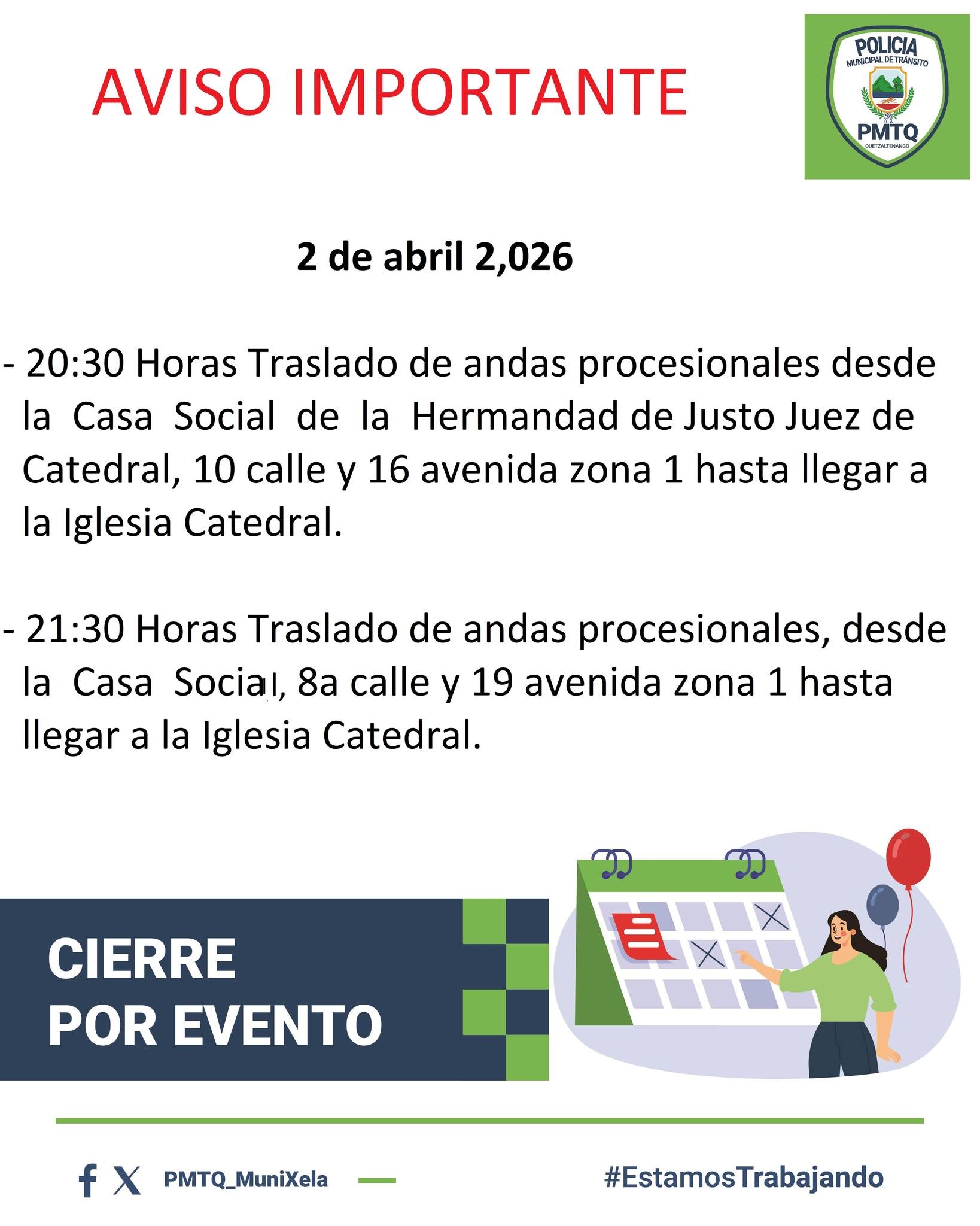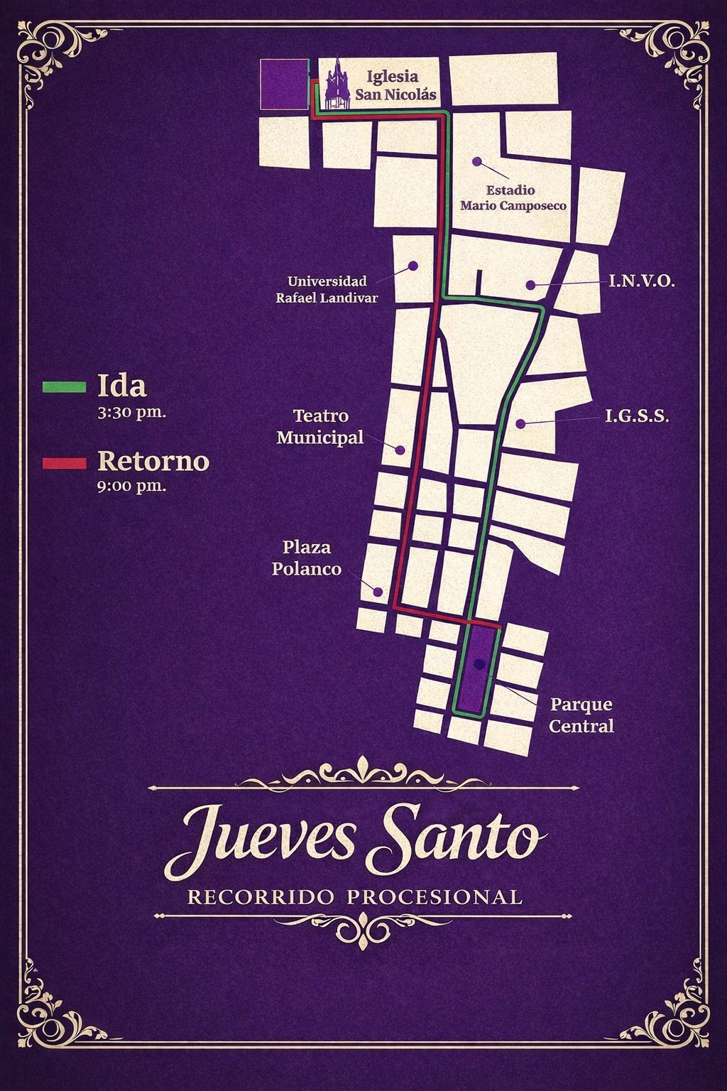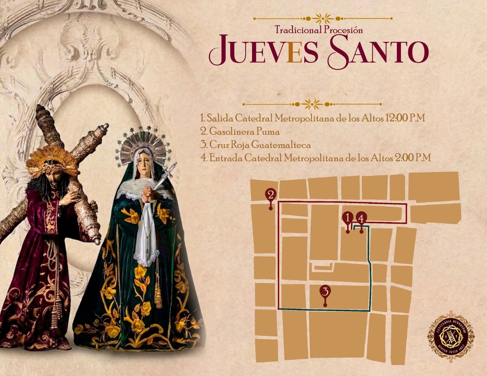 Dos procesiones se tienen previstas en la ciudad de Quetzaltenango durante este Jueves Santo, aunque también se contempla el traslado de andas procesionales ya en horarios nocturnos.