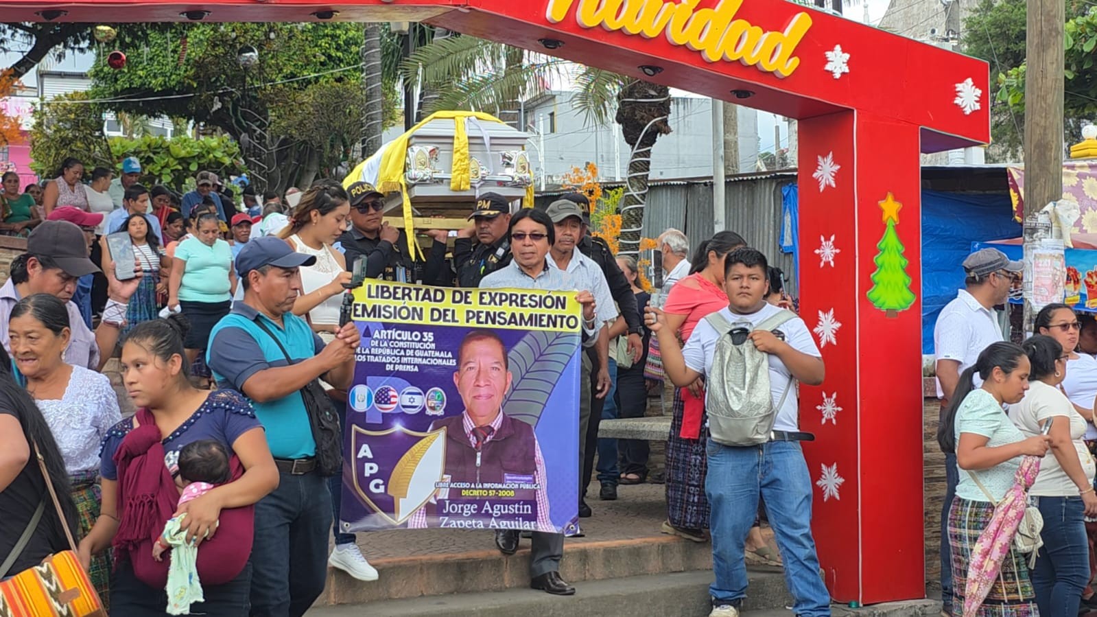 Un homenaje póstumo se le rindió este miércoles al comunicador social, Agustín Zapeta, quien ayer fue localizado sin vida en una cuneta en El Aguacal, jurisdicción de San Pablo Jocopilas, Suchitepéquez.