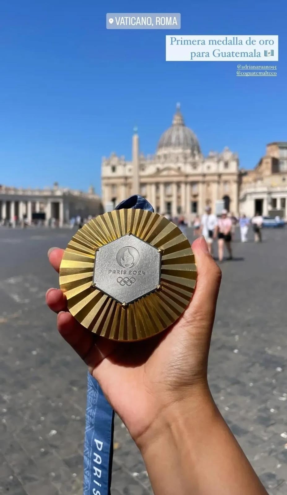 Luego de ganar el Oro y establecer un Récord Olímpico, Adriana Ruano Oliva, decidió que su primer recorrido junto a la presea dorada sería en Roma, Italia, específicamente en el Vaticano, para que él mismo Papa Francisco, le diera la bendición.