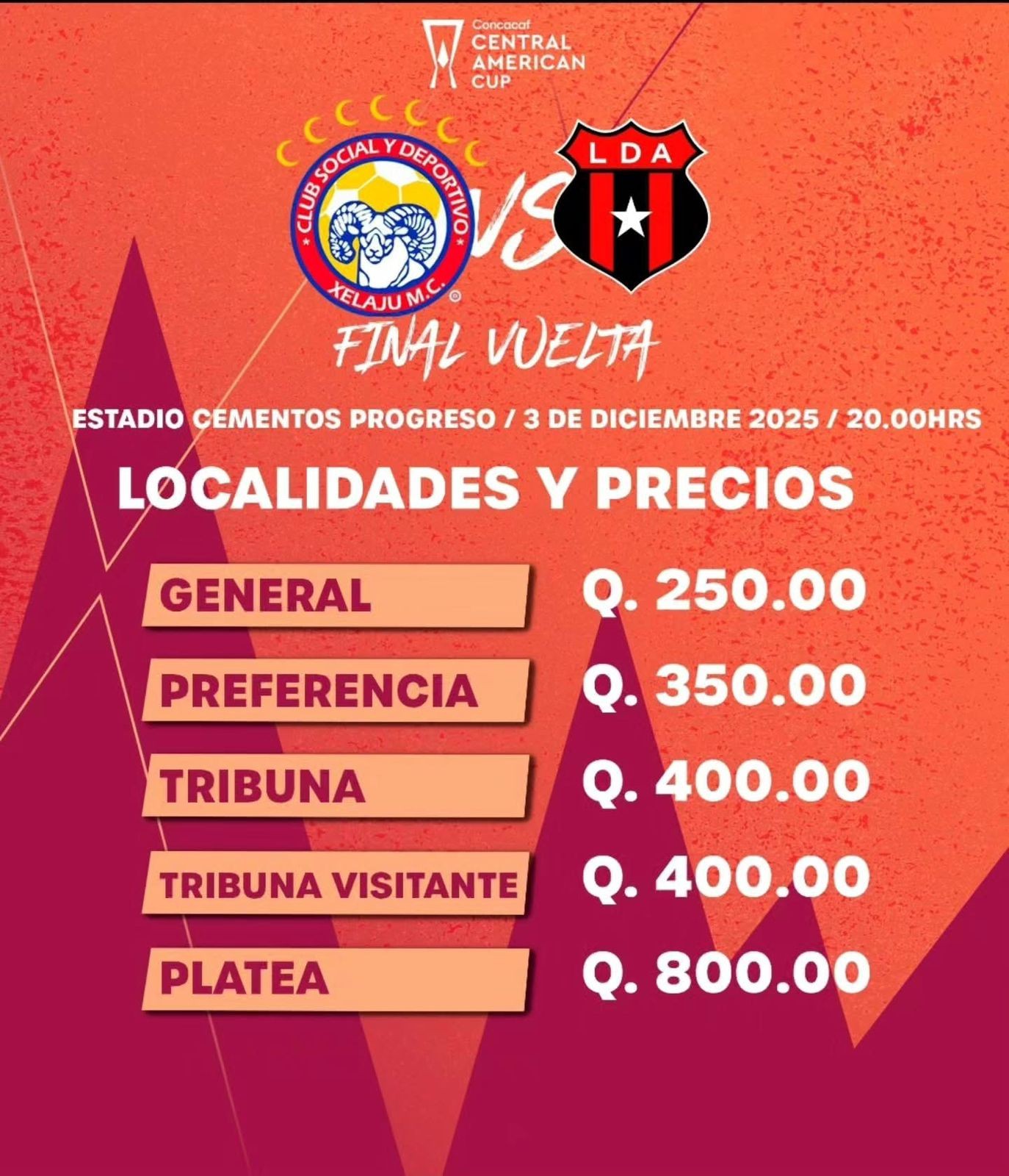 El club oficializó que estos serán los precios de los boletos para el partido de vuelta de la final entre Xelajú y Alajuelense: