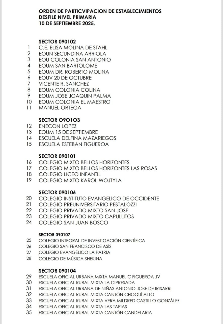 Más de 4 mil estudiantes, de 22 escuelas y 13 colegios del distrito educativo de Quetzaltenango, participarán este miércoles 10 de septiembre en el Desfile Inaugural de la Feria Centroamericana de la Independencia (Xelafer 2025).