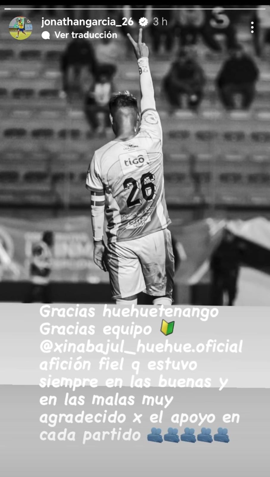 redes sociales para anunciar su salida del plantel de Xinabajul-Huehue.