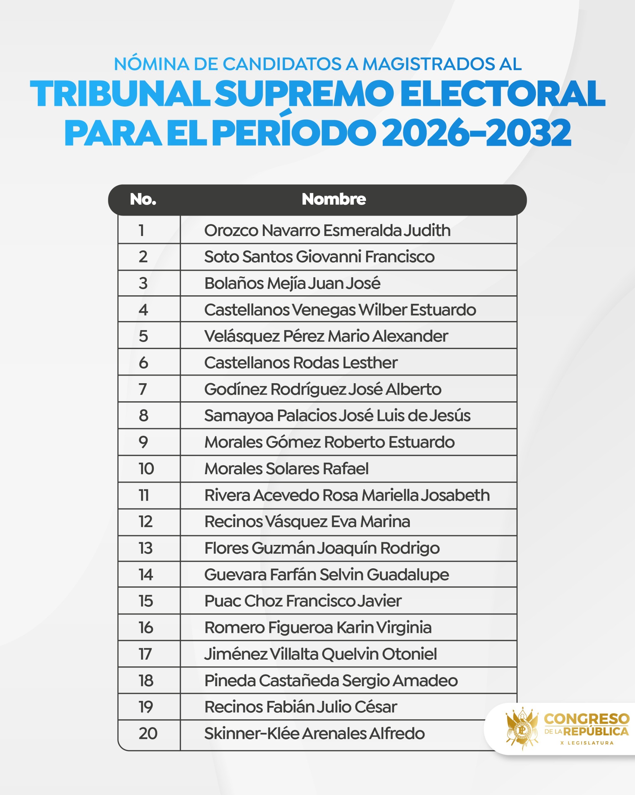 Otro nombre cuestionado es el del actual secretario General del TSE, Mario Alexander Velásquez Pérez, a quien se señala de haber bloqueado la candidatura presidencial del binomio del partido político Movimientos de Liberación de los Pueblos (MLP), Thelma Cabrera y Jordan Rodas, en las pasadas elecciones de 2023.