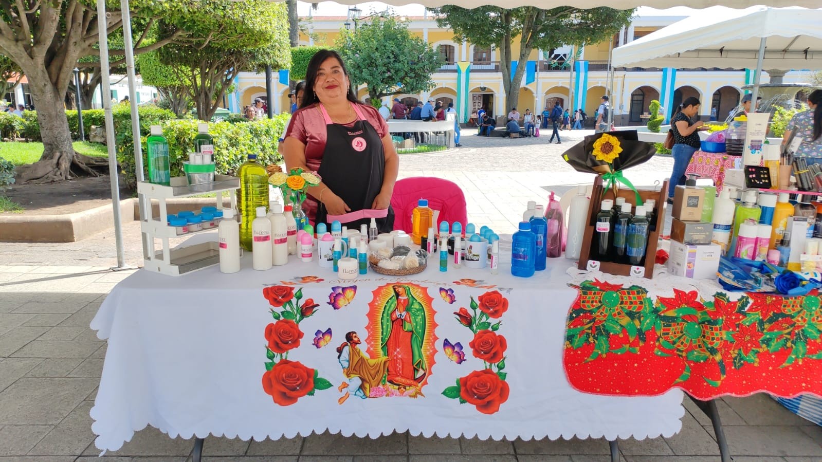 La jornada reunió a decenas de expositoras, quienes pusieron a disposición del público una variada oferta que incluyó antojitos típicos, platillos caseros, productos de limpieza, artículos de higiene personal, bisutería, joyería artesanal, fragancias, plantas ornamentales, productos personalizados, velas aromáticas, shampoos naturales y cremas corporales, entre otros.