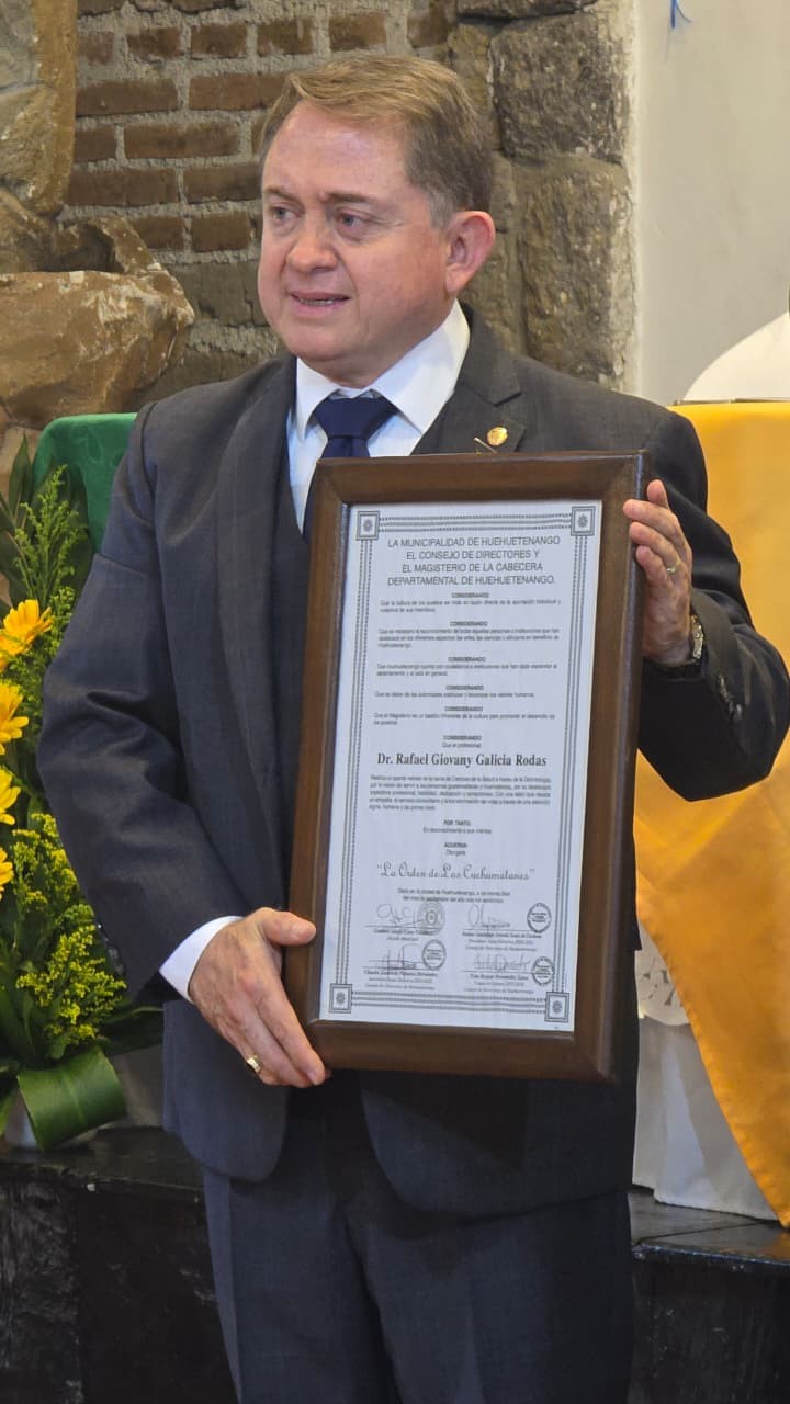 En una ceremonia emotiva, el Dr. Rafael Galicia fue condecorado con la Orden de los Cuchumatanes 2025, en la rama de Ciencias de la Salud. Este prestigioso reconocimiento, considerado la máxima distinción honorífica del departamento de Huehuetenango, fue otorgado en honor a su destacada trayectoria profesional y sus invaluables aportes al desarrollo médico y científico en el departamento.