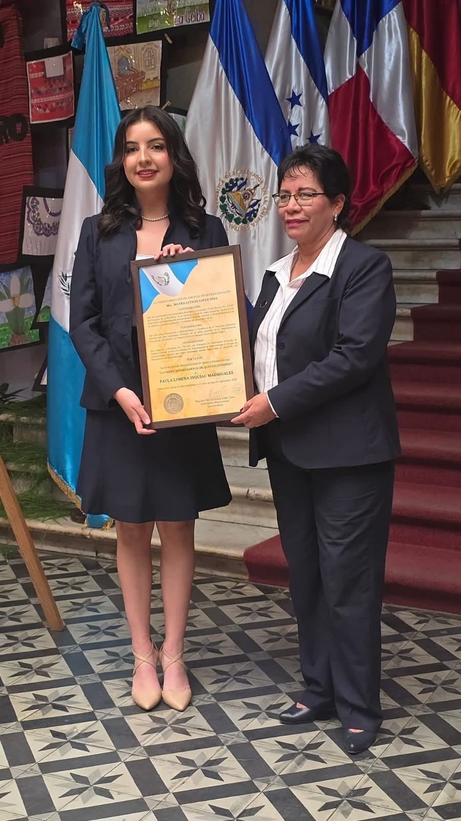 Por su parte, la joven Paula Ixquiac recibió el reconocimiento por ser un ejemplo para la juventud quetzalteca. Con apenas 16 años, se ha destacado en el ámbito científico al representar a Guatemala en el United Space School, programa internacional respaldado por la NASA, donde trabajó en el diseño de una misión tripulada a Marte junto a jóvenes de todo el mundo.