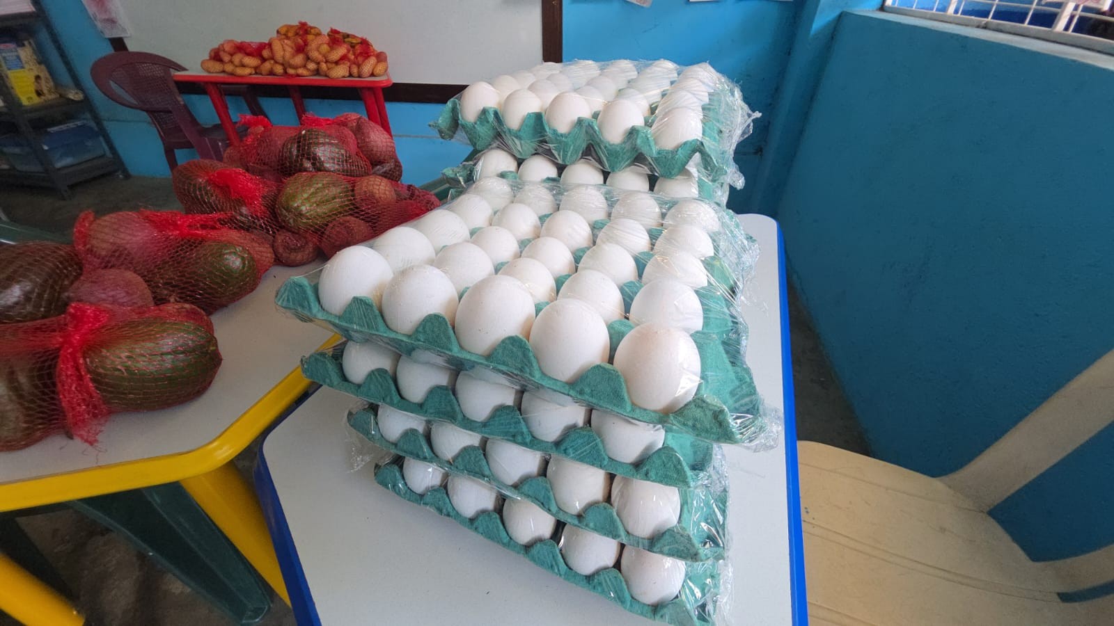 - Frutas y verduras: Papas, remolacha, güisquil, bananos y otras verduras frescas.