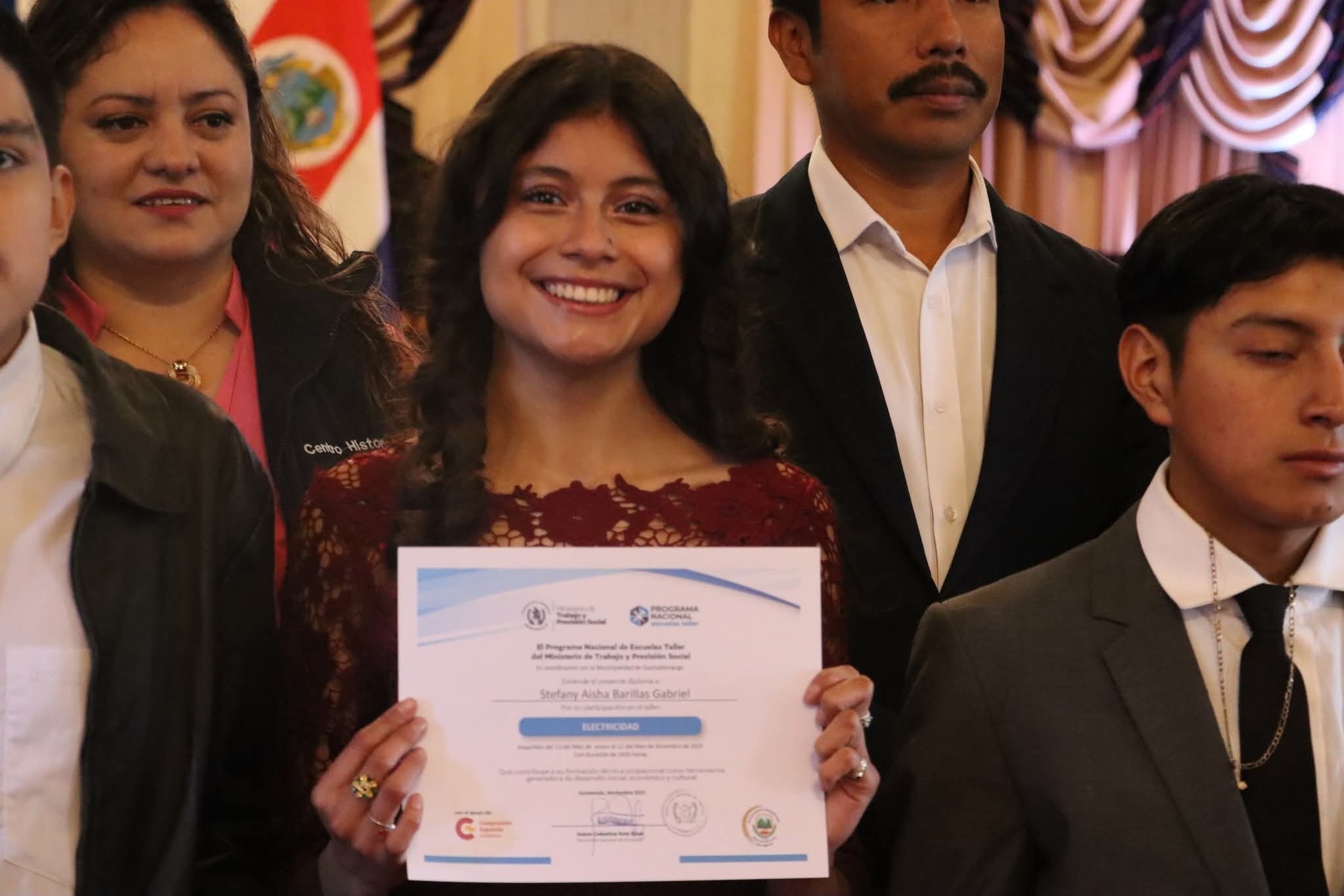 La Escuela Taller de Quetzaltenango realizó este viernes la clausura de los talleres de carpintería, obra y construcción, electricidad, herrería, forja y talla en piedra, en un acto donde los participantes recibieron los diplomas que acreditan la finalización de su proceso formativo. La actividad reunió a instructores y familiares que reconocieron el esfuerzo de los jóvenes durante los meses de capacitación.