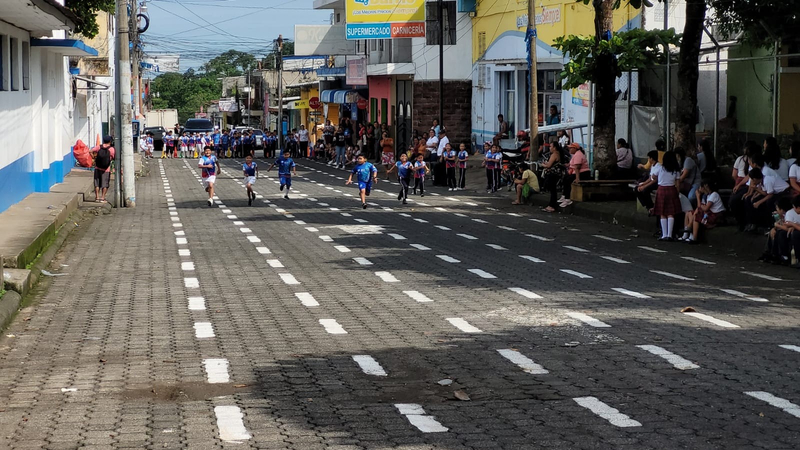 Frente a la Escuela Manfredo Hemmerling de Coatepeque, Quetzaltenango, se realiza la semana del Festival de Atletismo, en la que participan un promedio de 500 alumnos.