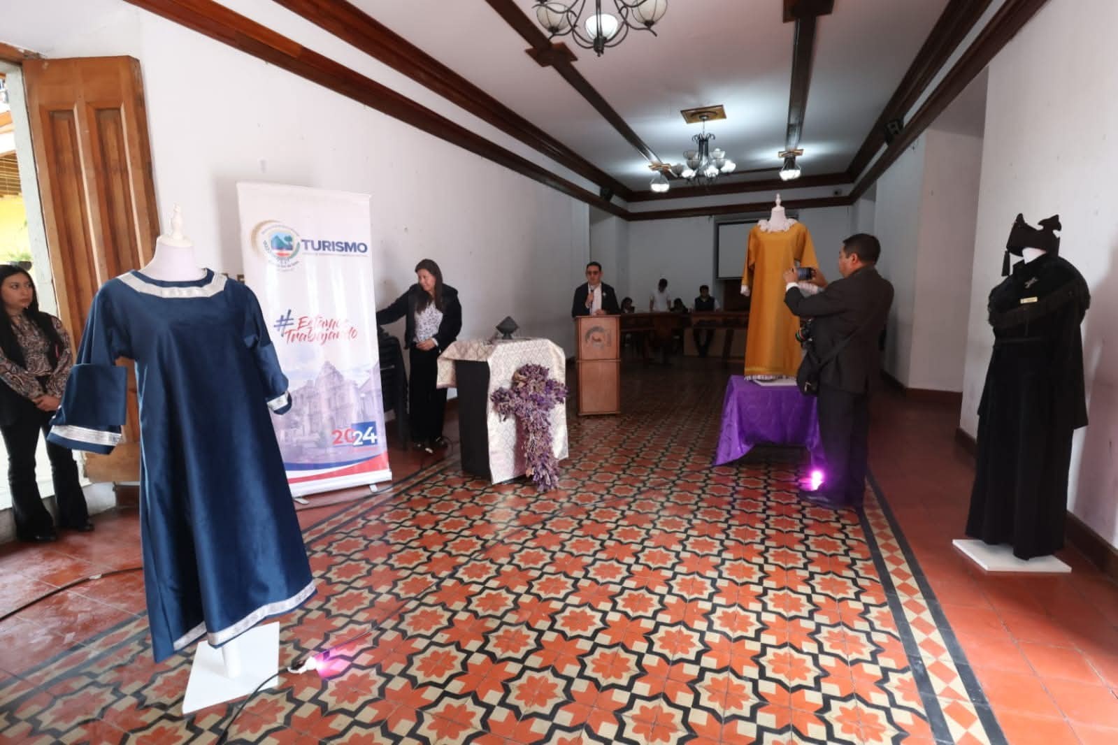 En el Centro Cultural Casa No’j, zona 1 de Xela, se realizó la exposición de mantos y enseres históricos de las hermandades del Señor Sepultado y la Virgen de Dolores de la Iglesia de La Transfiguración.