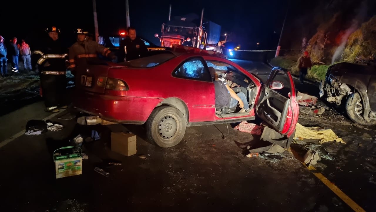 Información preliminar detalla que el vehículo sedán color rojo donde viajaba la familia, ascendía con dirección a Quetzaltenango cuando colisionó contra un picop que descendía hacia el túnel de Santa María.