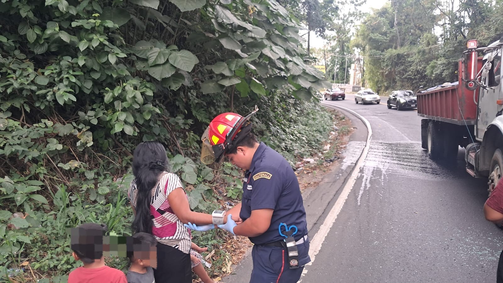 Elementos de los Bomberos Municipales Departamentales acudieron al lugar para brindar asistencia. Según el reporte, las víctimas fueron estabilizadas en el sitio y, pese a la magnitud del susto, se negaron a ser trasladadas a un centro asistencial.