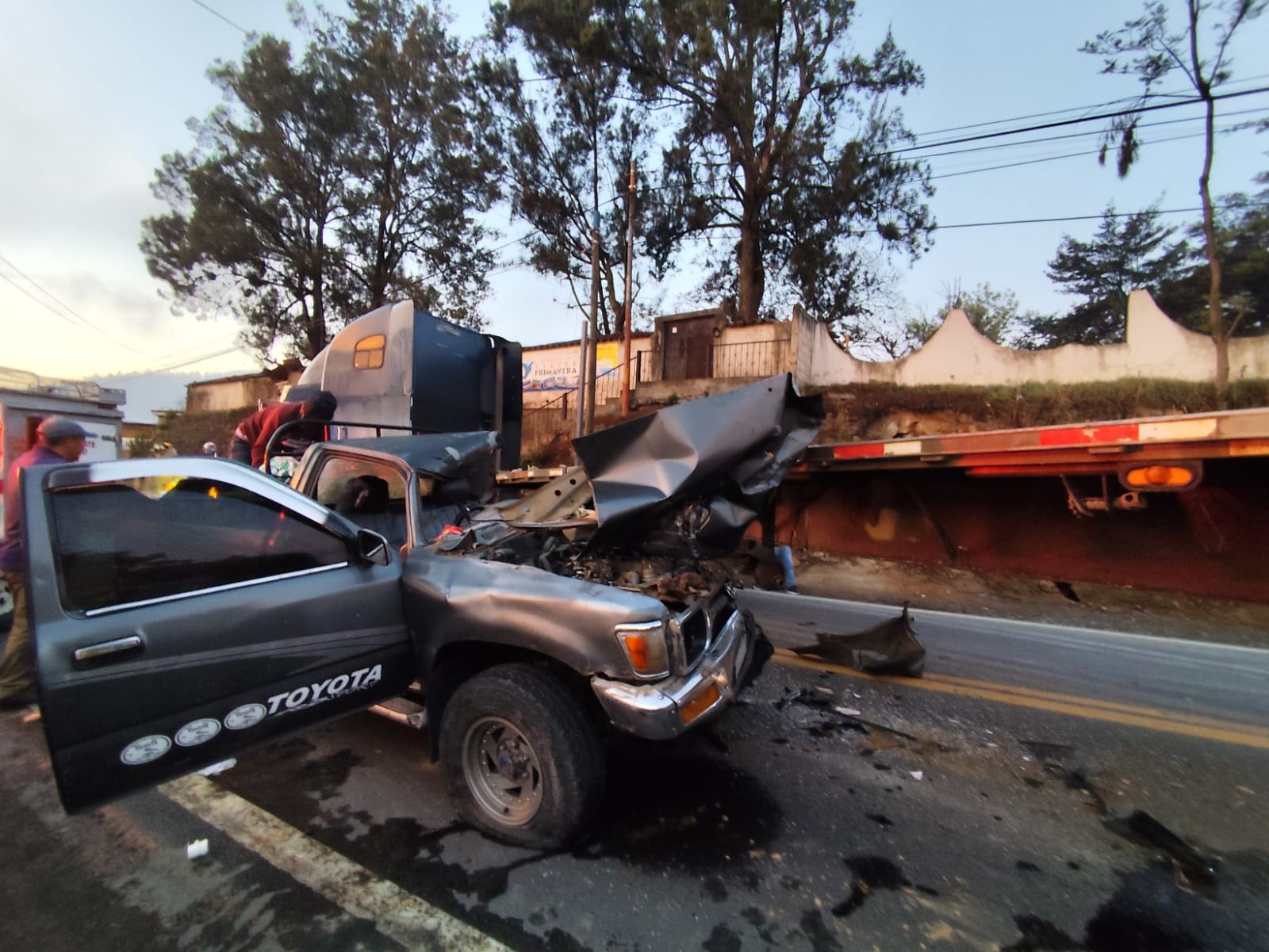 El incidente ocurrió cuando los tripulantes de un picop colisionaron contra la rastra de un tráiler que intentaba realizar un viraje en la vía principal, la maniobra habría sorprendido al conductor del vehículo liviano, provocando que este quedara atrapado entre los hierros retorcidos tras el fuerte choque.