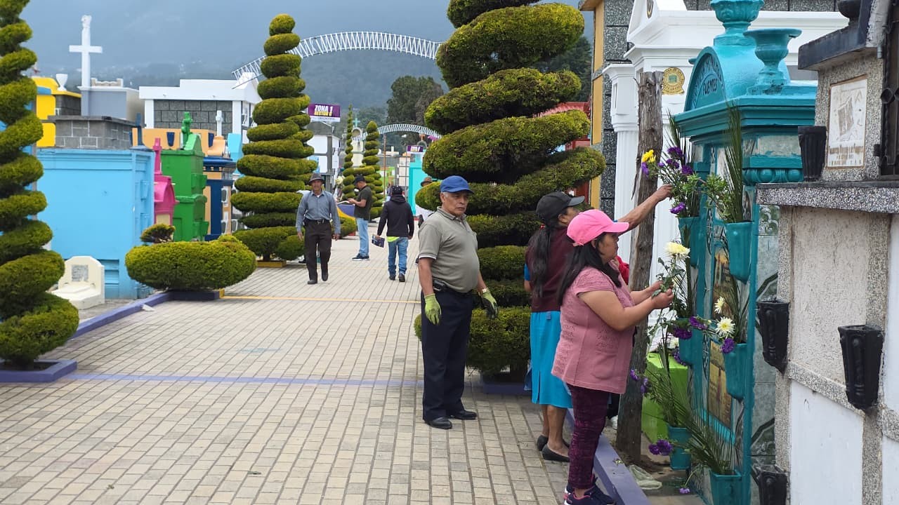 Con motivo de la conmemoración del Día de Todos los Santos y el Día de los Fieles Difuntos, familias acuden al Cementerio General de San Pedro Sacatepéquez, San Marcos, para rendir homenaje a sus seres queridos que descansan en paz.