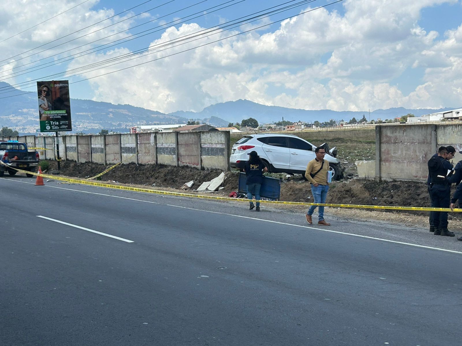 Hasta el momento, se desconoce la identidad de la persona fallecida, quien conducía el vehículo. Agentes de la Policía Nacional Civil (PNC) mantienen el resguardo de la escena, mientras que personal del Ministerio Público inició el peritaje correspondiente y las diligencias para el levantamiento del cadáver.