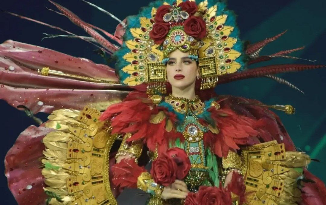 Bosch no fue la excepción. La originaria de Tabasco lució un vestido carmesí de manga larga con bordados dorados y una capa semitransparente que acentuó su presencia en el escenario. La pieza fue diseñada por Trino Orozco, responsable también del vestido amarillo que la mexicana utilizó durante la fase preliminar.
