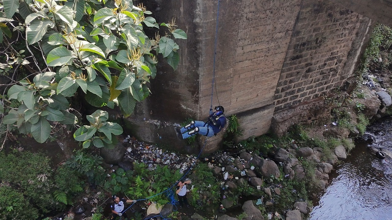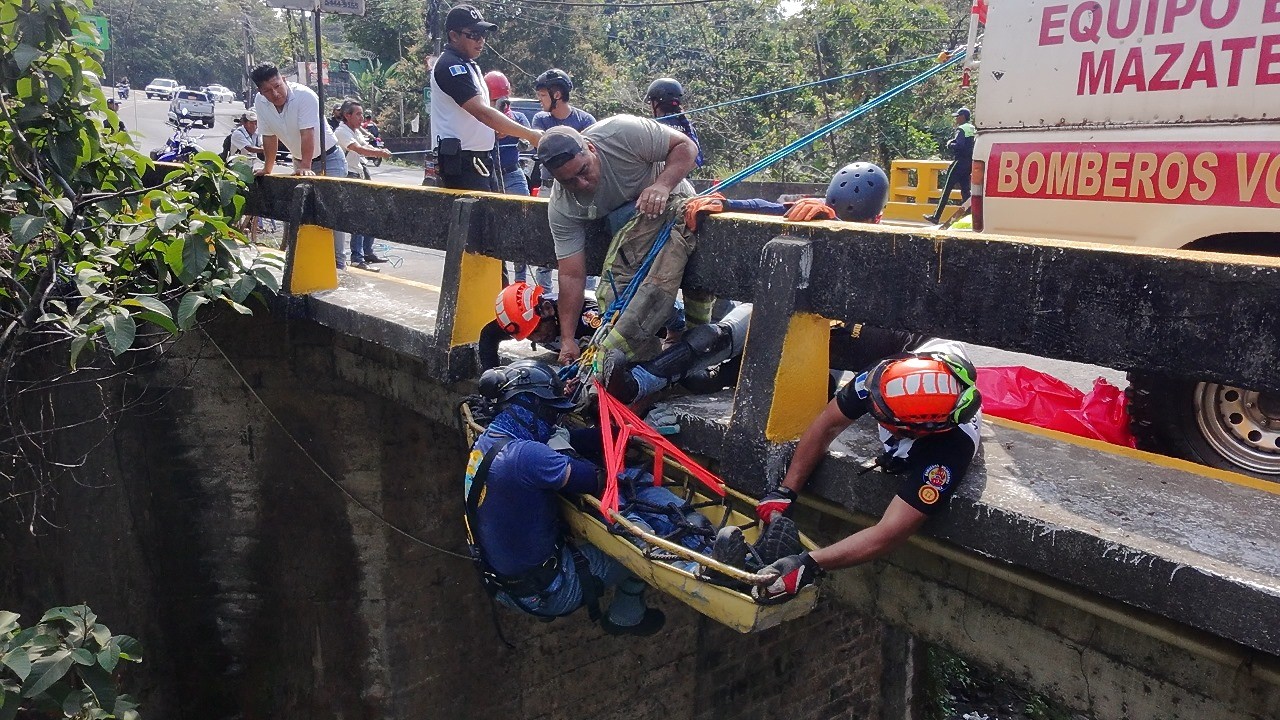 Como parte de la formación para integrar las filas de los Bomberos Voluntarios, un grupo de aspirantes realizó prácticas de rescate en un puente de gran altura en la entrada a Mazatenango. El objetivo de la actividad era determinar el grado de resistencia y los conocimientos que los aspirantes han adquirido durante el tiempo que se han capacitado.