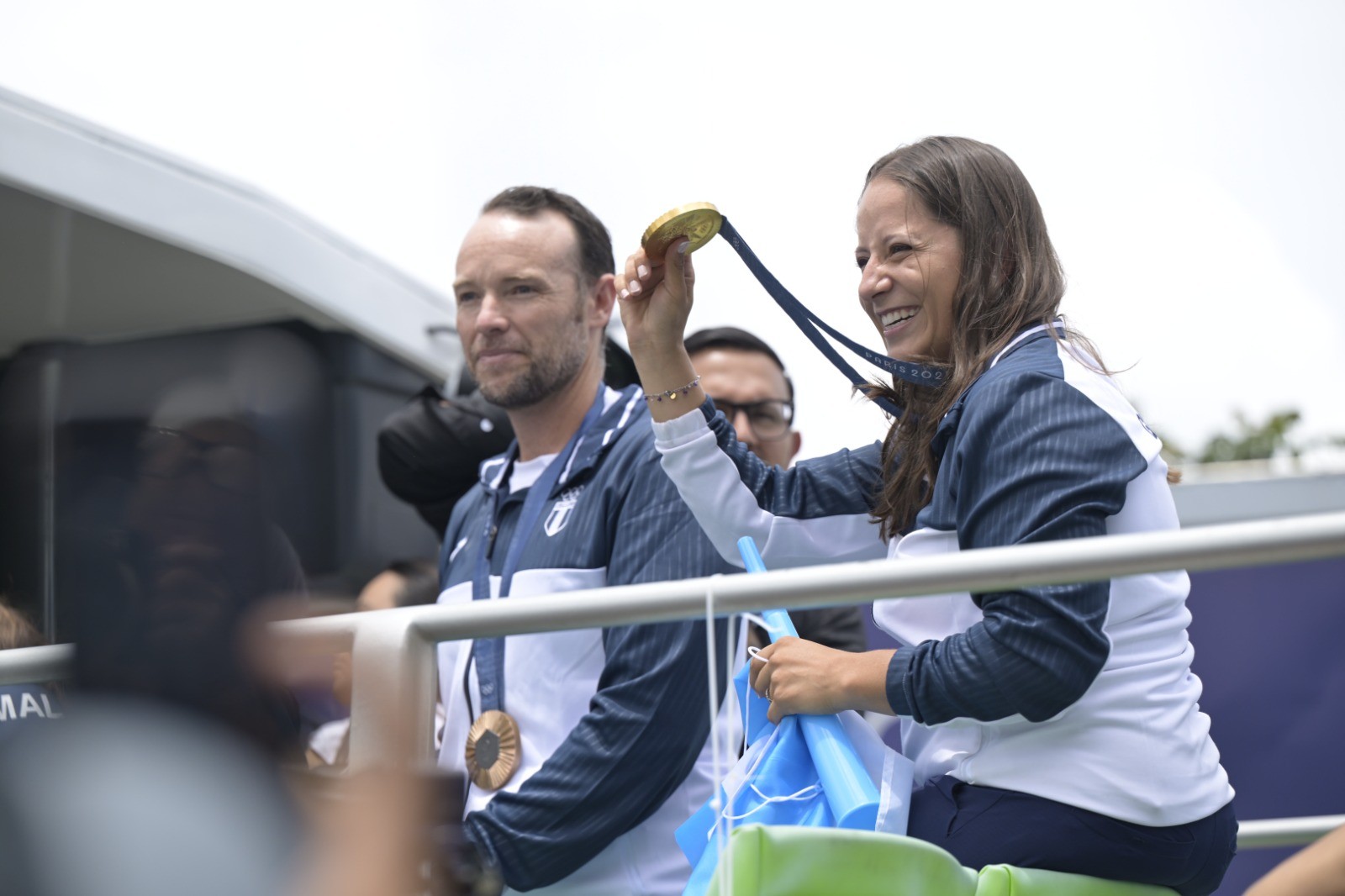 En el recorrido, cientos de guatemaltecos celebraron el regreso de los deportistas, aplaudieron sus esfuerzos y agradecieron por dar al pueblo dos medallas olímpicas, una de bronce por parte de Jean Pierre Brol y una de oro por parte de Adriana Ruano, quien también se convirtió en la primera mujer guatemalteca en obtener una presea olímpica y estableció un nuevo récord olímpico. Aunque la lluvia se hizo presente, no fue obstáculo para que los chapines gritaran su amor por la patria.
