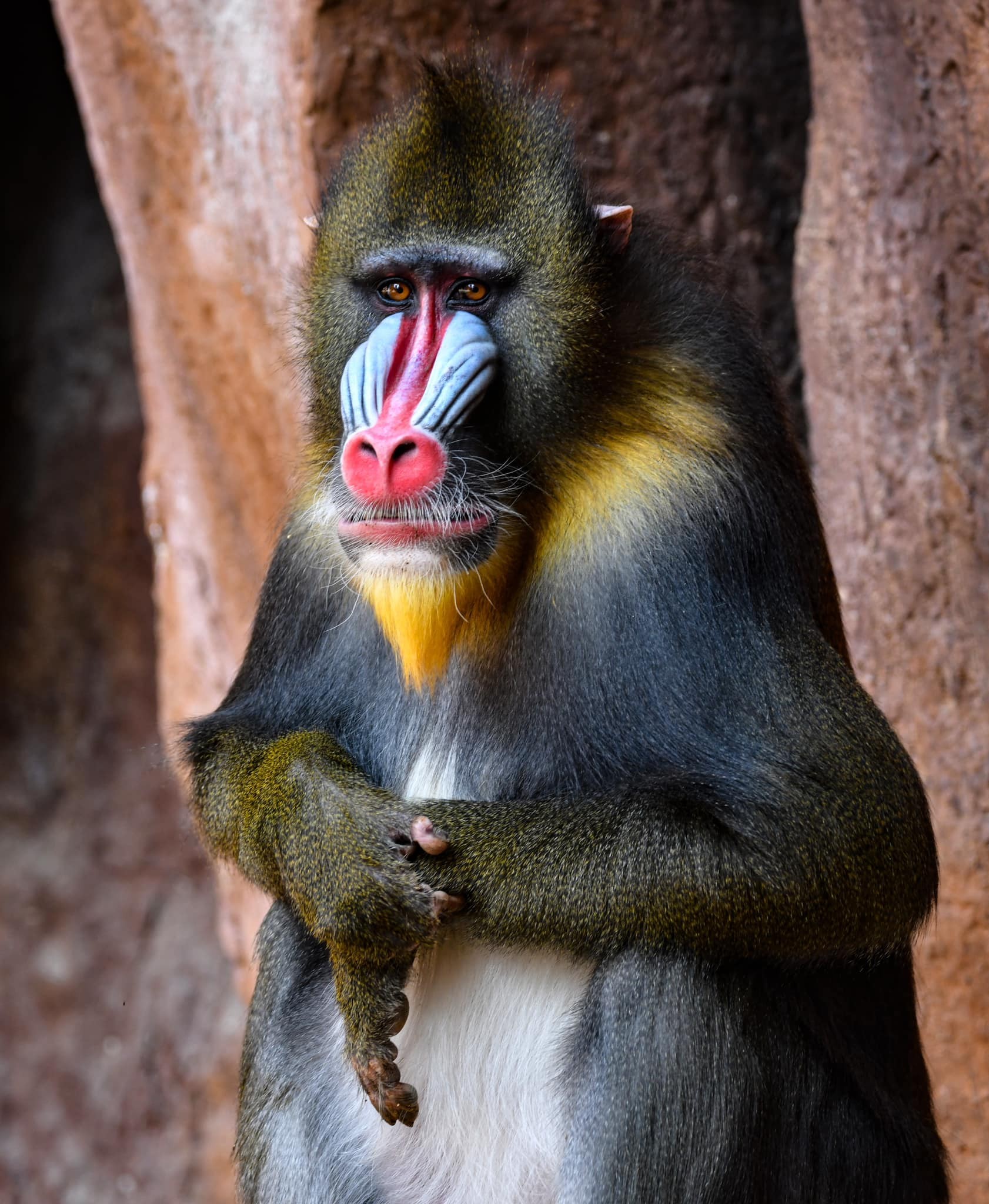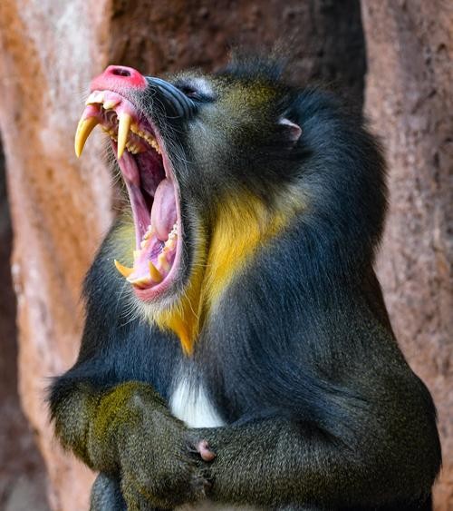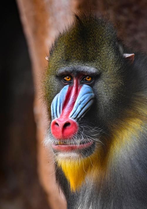 El mandril es una especie de primate emparentado con los babuinos, y más estrechamente con el dril. Con un peso de hasta 55 kilos, y exceptuando a los simios, son los monos más grandes del planeta. Su área de distribución va desde el oeste de las zonas tropicales de África, hasta el Congo.