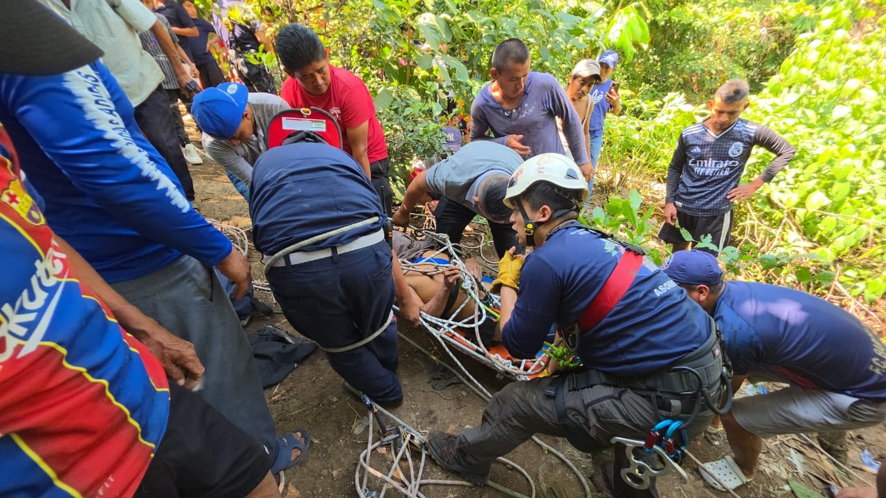 Olegario Hernández, integrante de los Bomberos Municipales Departamentales, explicó la complejidad de la emergencia: “El área era bastante difícil, por lo que trabajamos con equipo especial para el rescate de la persona, quien fue identificada por familiares como Bonifacio Ramírez, de 42 años. Presentaba múltiples fracturas y, considerando la profundidad del barranco, tuvo mucha suerte. Las técnicas y el conocimiento del personal fueron fundamentales para este rescate”.