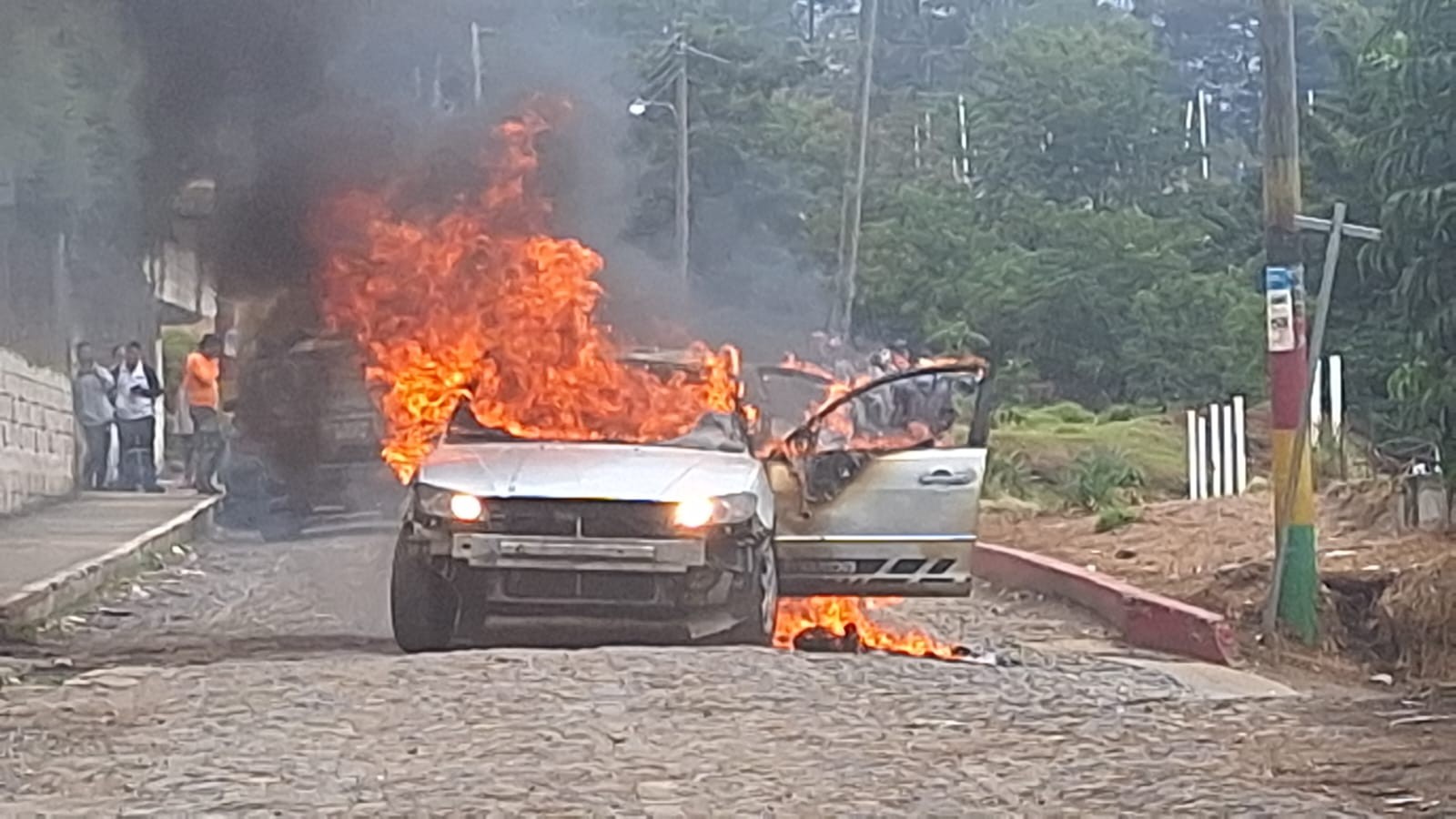 La situación se tornó tensa cuando un grupo de pobladores llegó hasta la subestación policial donde los capturados eran resguardados, exigiendo justicia. Minutos después, los vecinos prendieron fuego al automóvil utilizado por los sospechosos, como una muestra de repudio ante los hechos ocurridos.