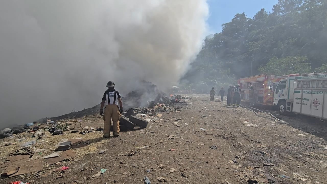 Diversos cuerpos de socorro y brigadas municipales trabajan intensamente para sofocar un incendio de grandes proporciones que afecta el basurero municipal de Coatepeque, Quetzaltenango. Debido a la magnitud del siniestro, ha sido necesaria la intervención de refuerzos de municipios vecinos y el uso de maquinaria pesada.