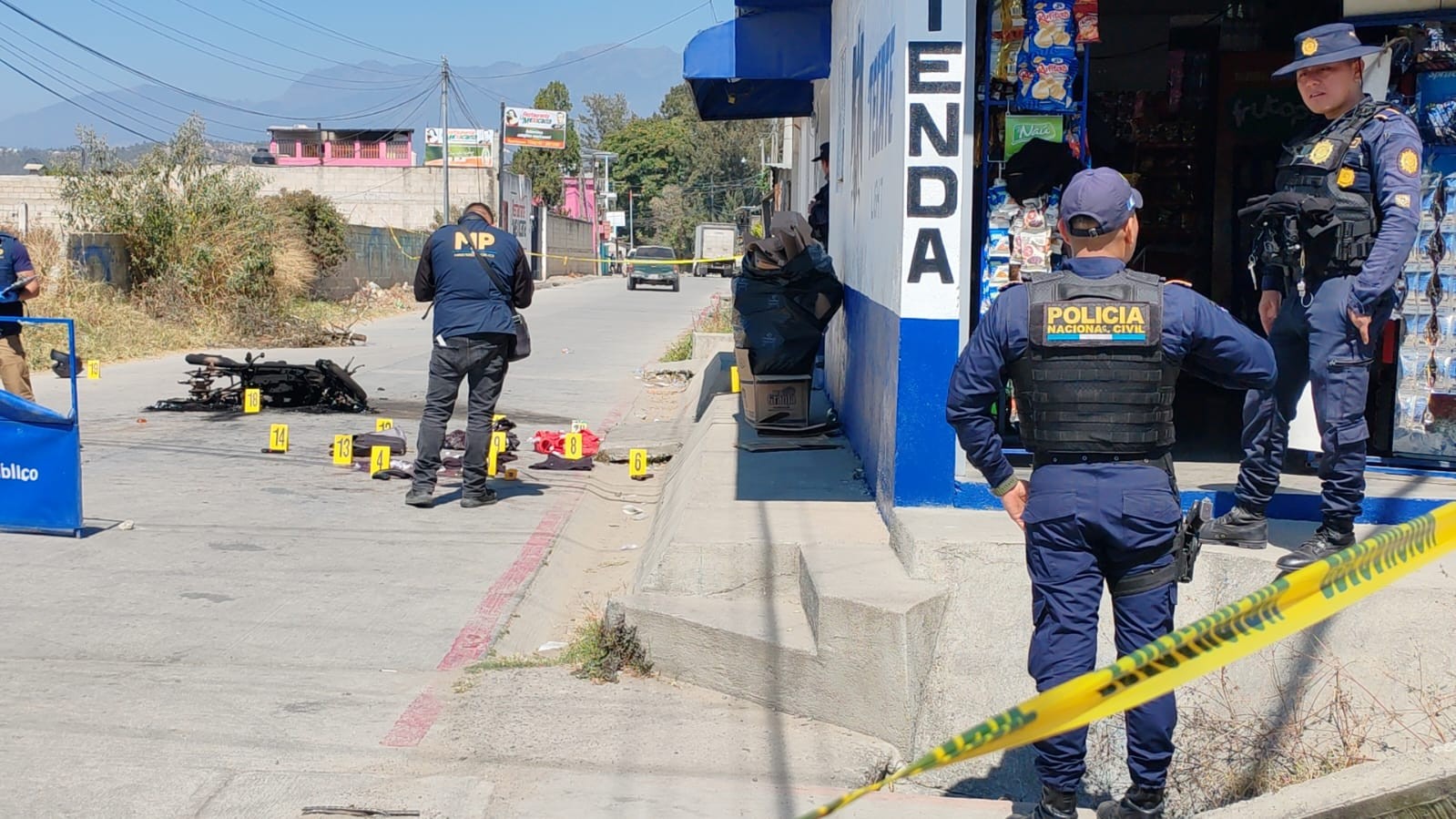 Al lugar acudieron fiscales del Ministerio Público (MP) y agentes investigadores de la Policía Nacional Civil (PNC) quienes realizaron el procesamiento de la escena, recabaron evidencias e iniciaron las diligencias correspondientes para esclarecer lo ocurrido y determinar si los señalados pertenecen a una estructura criminal que opere en el departamento.